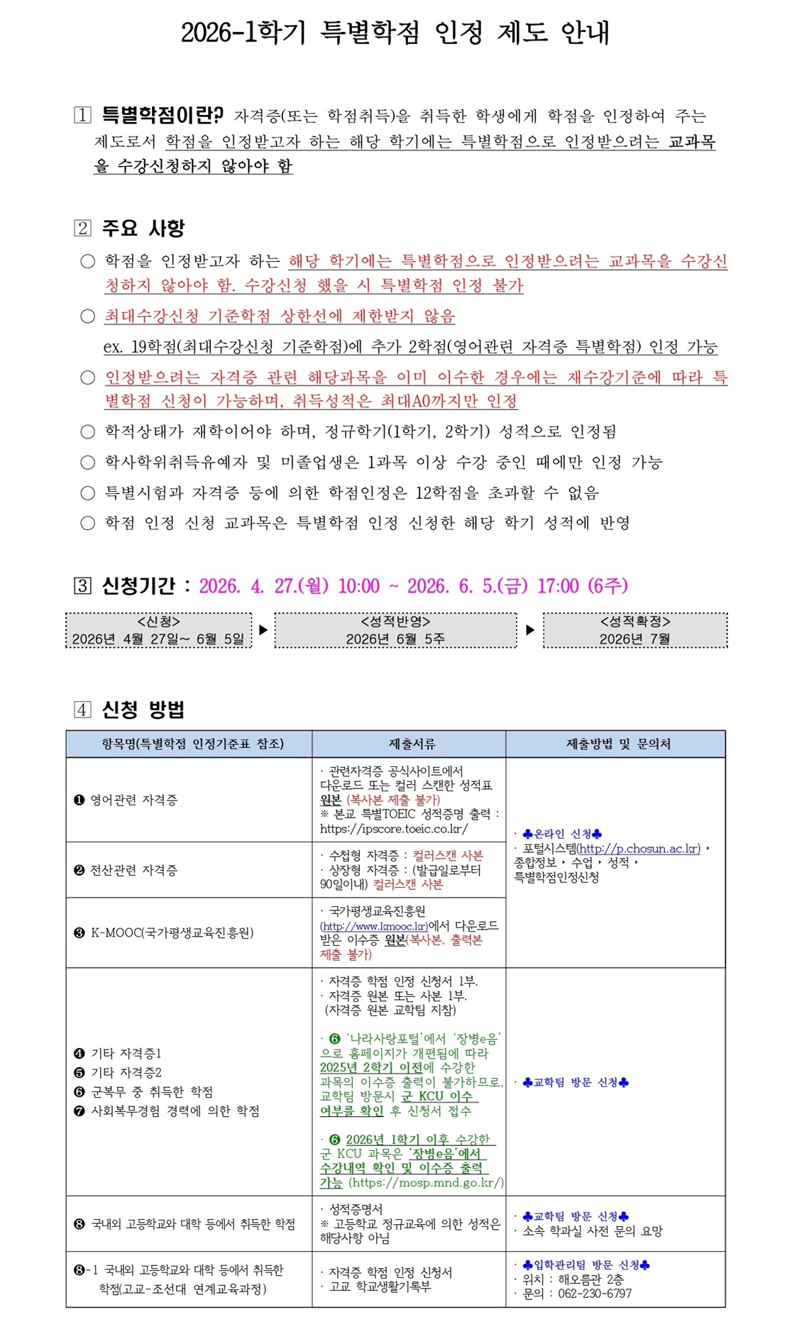 2026학년도 1학기 특별학점 인정제도 안내